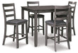 It’s so easy being gray—at least this 5-piece dining set makes it seem that way. This transitional counter-height table and barstool ensemble sports a charcoal gray finish with textured gray upholstery for an on-trend and relevant appeal. Plushly upholstered seat cushion in a practical polyfiber makes it a pleasure to linger at the table. Best of all, square table design is ideally suited for small spaces.